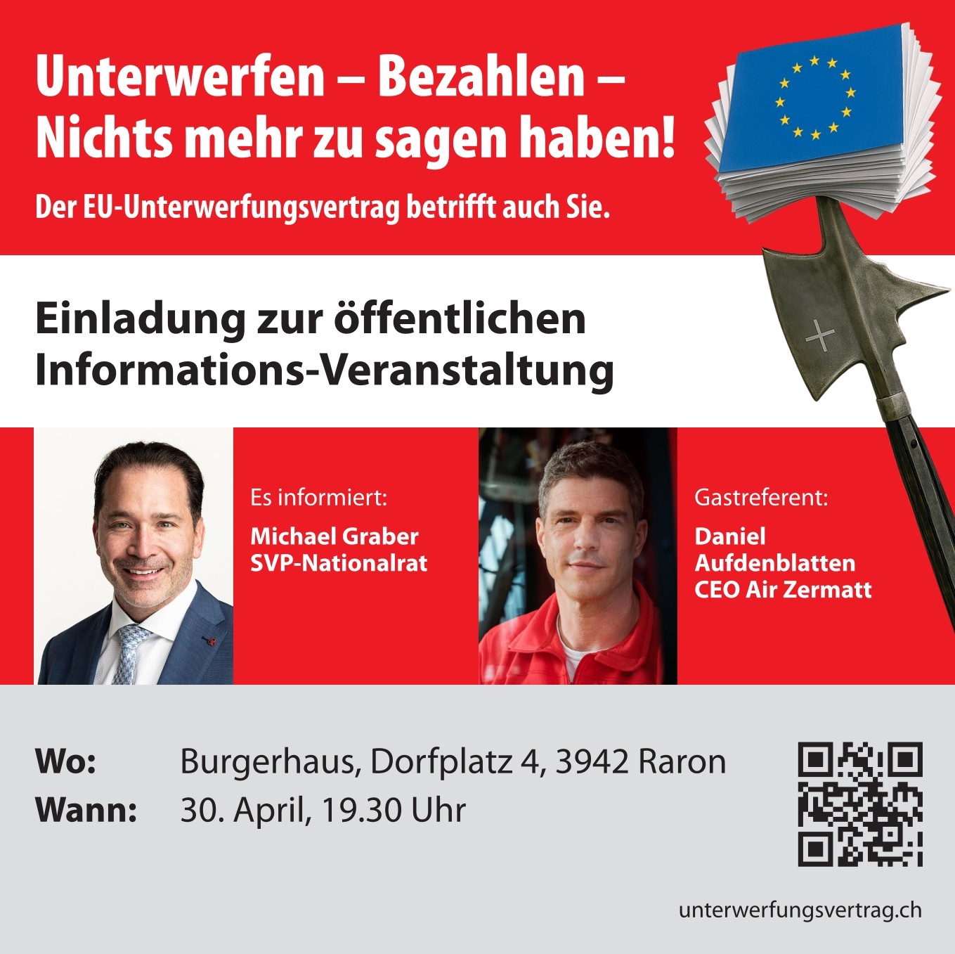 Öffentlicher Anlass zum EU-Unterwerfungsvertrag Raron
